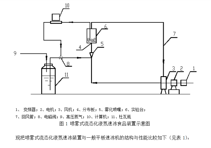 等进行速冻研究,但采用喷雾式流态化液氮速冻装置对果蔬进行瞬时冻结的研究鲜见报道。