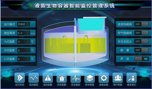 1、液氮罐监控:实时采集低位、高位温度,检测液位高度;根据液位值和温度值自动开关进液电磁阀;发送报警信息。